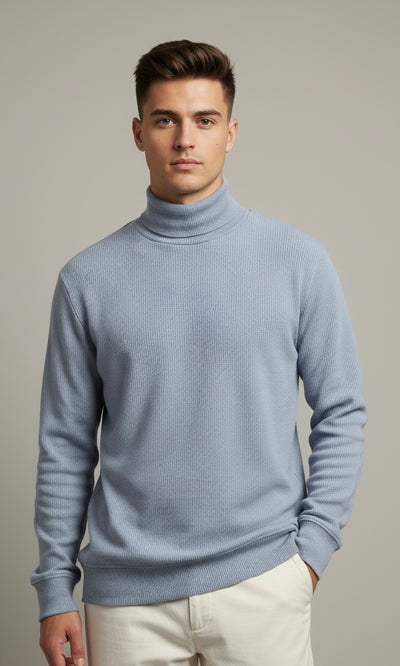 Tealish Blue Rib Knitted Turtle Neck Shirt