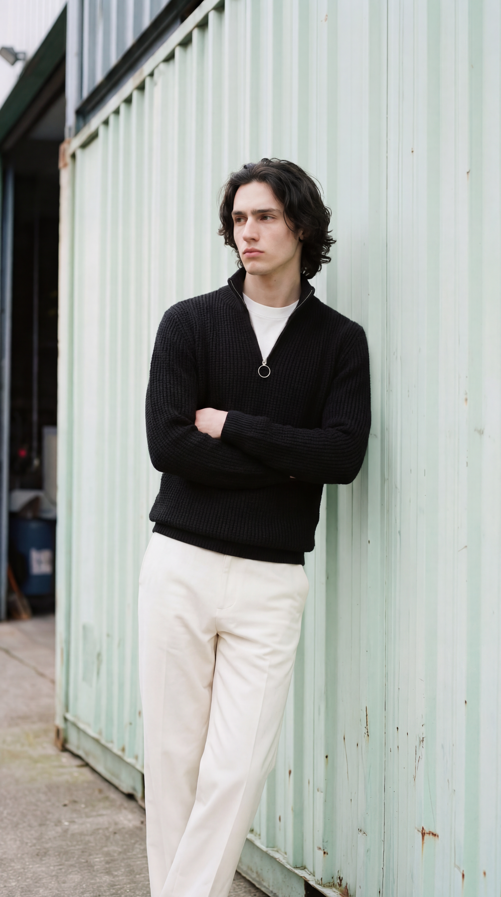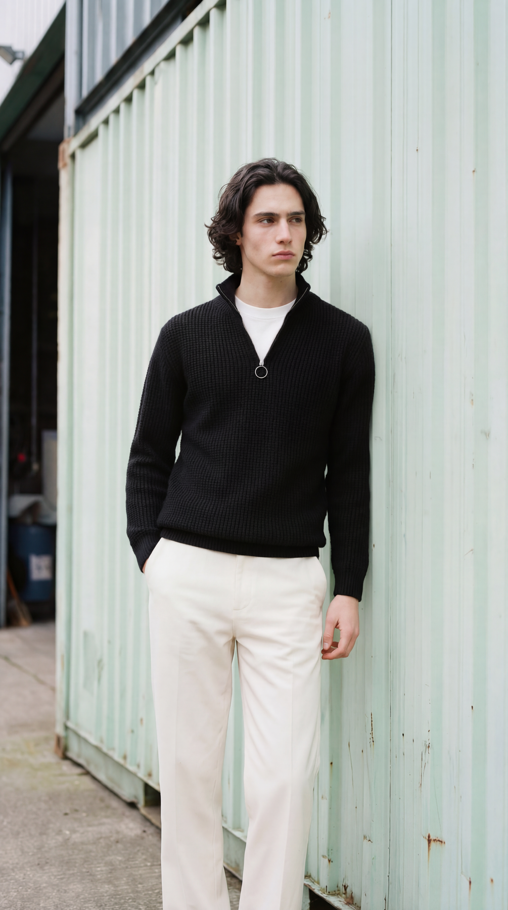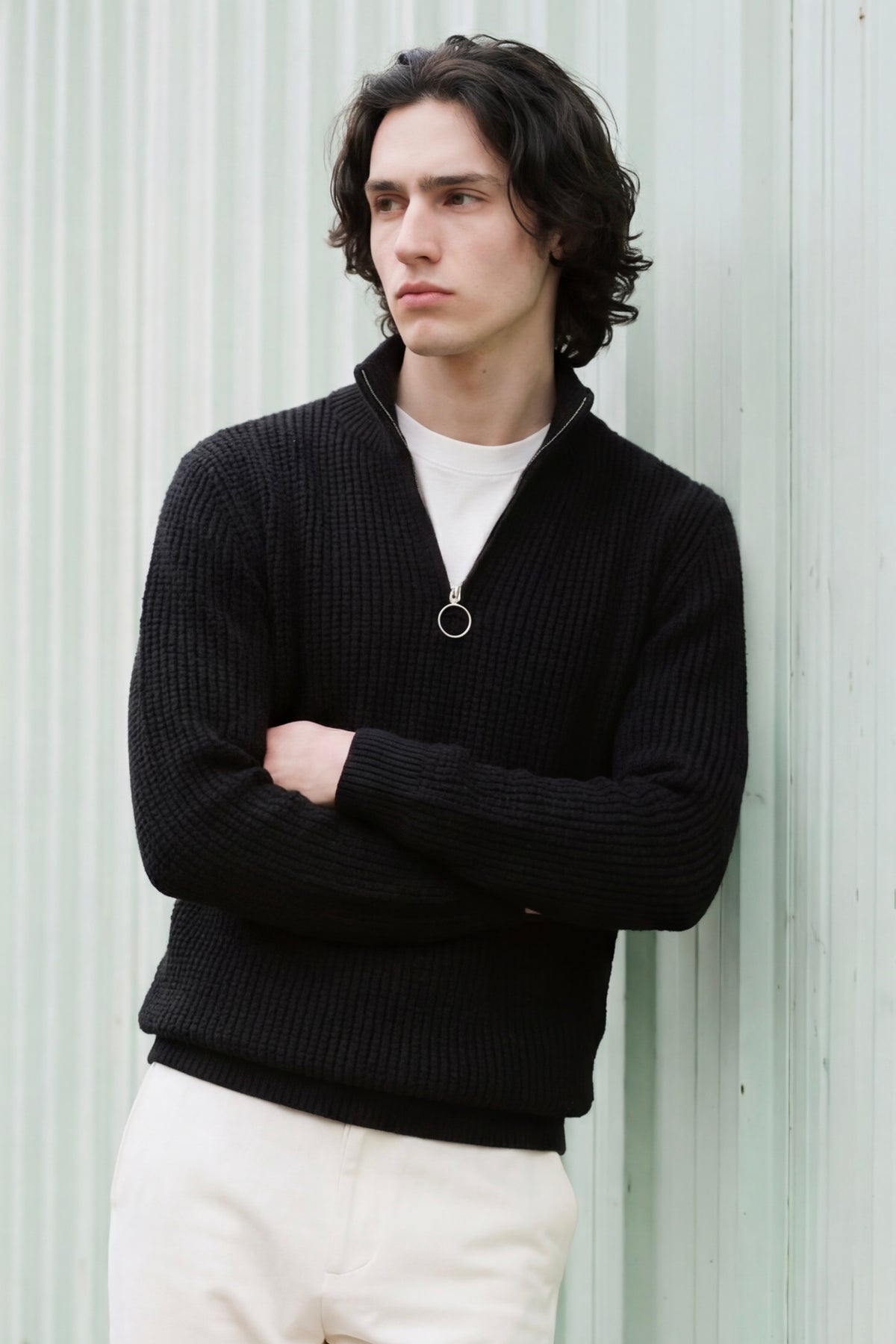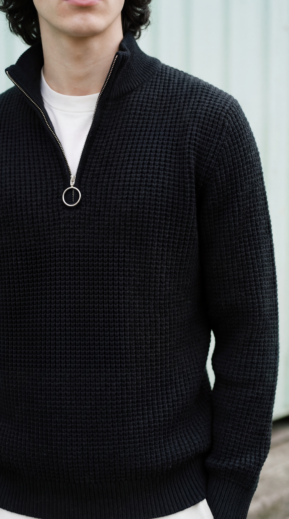 BLACK QUARTER ZIPPER SWEATER