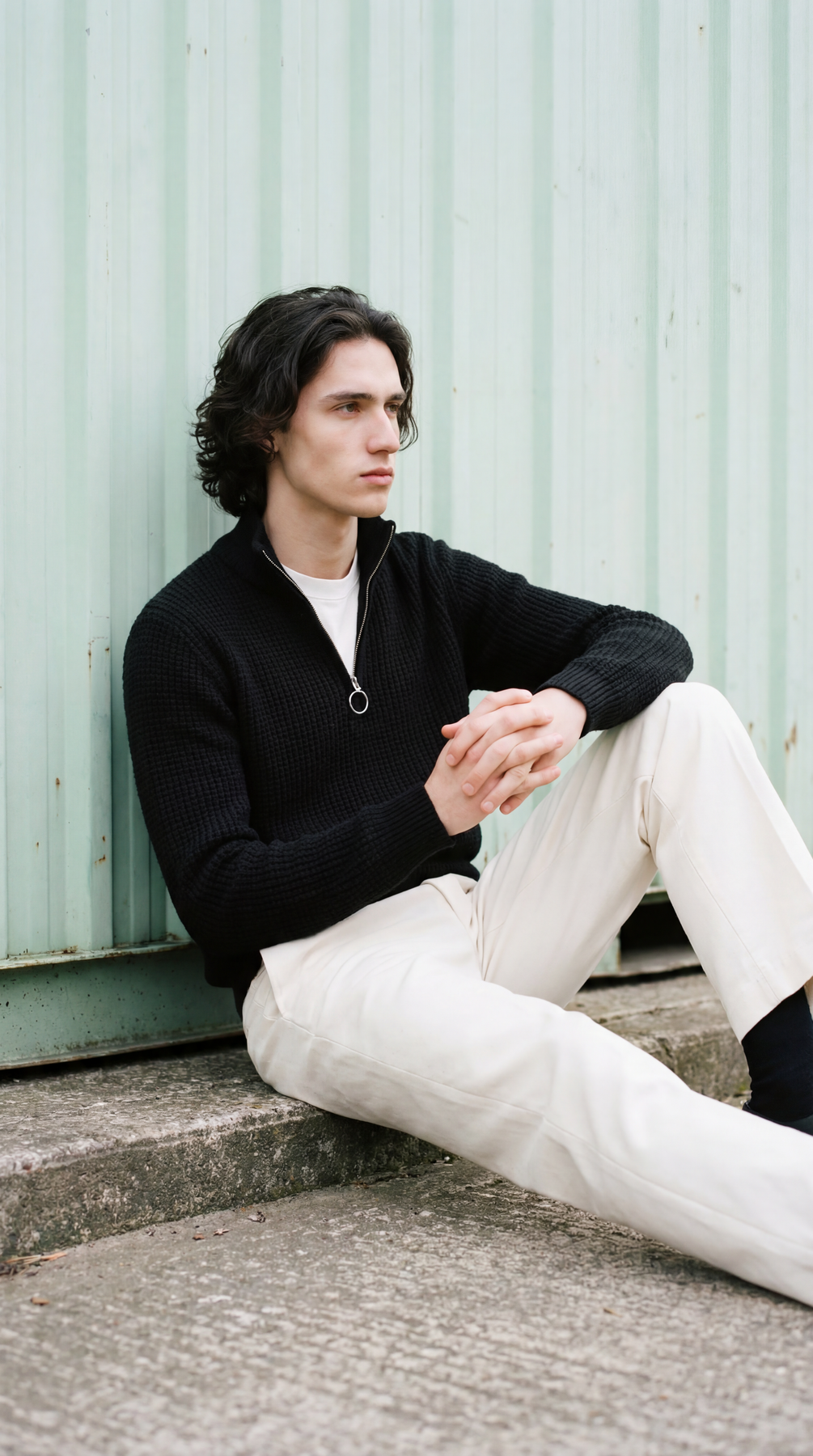 Mock neck with a quarter-zip placket for easy layering and a refined look.